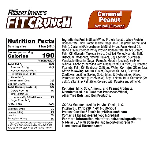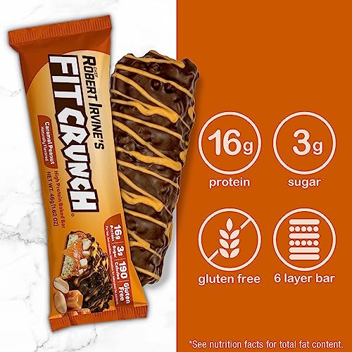 FITCRUNCH Snack Size Protein Bars, Designed by Robert Irvine, World’s Only 6-Layer Baked Bar, Just 3g of Sugar & Soft Cake Core (Caramel Peanut)