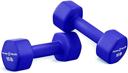 Fitness Republic Neoprene Dumbbell Set of 2, Non-Slip, Hex Shape, Free Weights Set for Muscle Toning, Strength Building, Weight Loss – Portable Weights for Home Gym Hand Weight