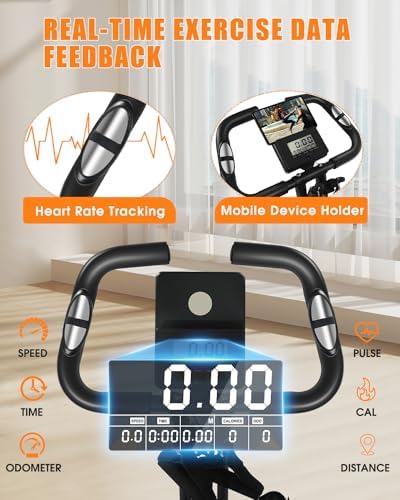 【LCD Monitor To Track 6 Vital Exercise Datas】We choose a large-sized LCD display with a clear screen to track these 6 vital exercise dates: Distance, Calories, Pulse, Time, Speed, and Odometer. Feedback real-time data helps you reduce fat and increase muscle, an essential companion in your sports. This foldable workout bike also has a very thoughtful design, when you put the phone on the holder, it will not block the LCD display, you can see exercise data and a good movie at the same time!