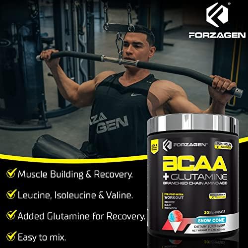 FORZAGEN BCAAS Amino Acids Powder with Glutamine BCAA Powder, Branched Chain Amino Acids Supplements Powder, BCAA Lean Energy Pre Workout – Post Workout Muscle Recovery Powder, 30 Servings