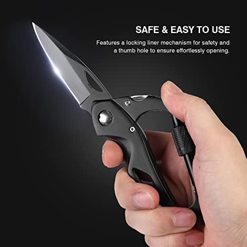 【Safe & Easy to use】The folding pocket knife for men features a locking liner mechanism for safety and a thumb hole to ensure effortlessly opening. All tools are quick release and easy to use. Perfect for camping, backpacking, hiking, hunting and other outdoors activities.