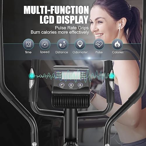 FUNMILY Elliptical Exercise Machine, Elliptical Machine for Home Use with LCD Monitor & Heart Rate Sensor, 10 Level Resistance Magnetic Elliptical Trainer Max 390 Lbs Weights Capacity