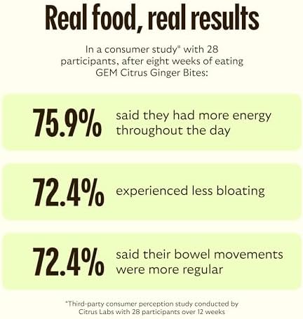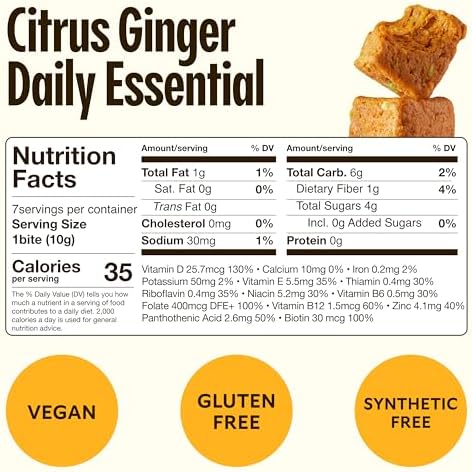 GEM Daily Essentials Citrus Ginger Multivitamin | 4 x 7-Bite Pack | Supports Energy, Gut, Skin, Brain, Bone & Immunity | 20+ Whole-Food Vitamins & Minerals | Gluten Free, Soy Free, No Animal Products
