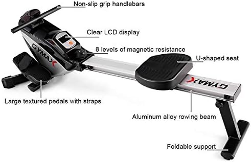Gymax Magnetic Rower, 8-Level Folding Magnetic Rowing Machine with LCD Monitor, for Home Gym Cardio Exercise Fitness