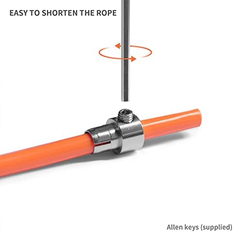 WEIGHTED TANGLE-FREE & DURABLE ROPES. 8MM PVC-coated steel cable allows for safe and durable jumping on any surface, the tangle-free design minimizes trip-ups. 1/2lb weighted on the rope makes jumping easy to learn for beginners and offers a unique challenge for experienced fitness goers.