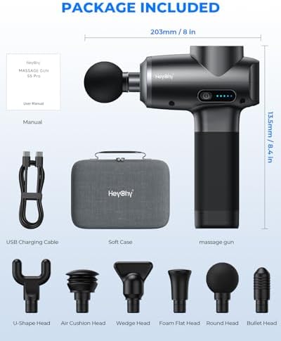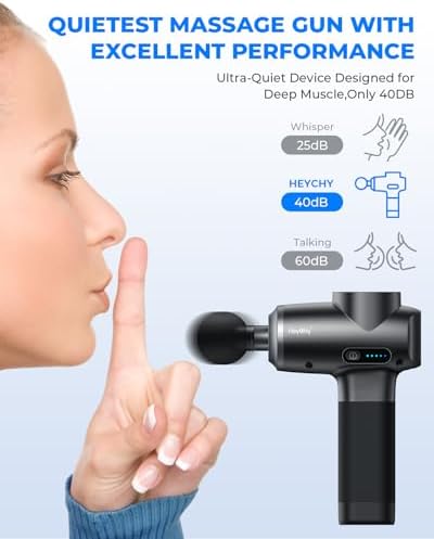 HEYCHY Deep Tissue Massage Gun 2X Powerful for Athletes, Super Quiet 35dB Handheld Percussion Massager with OLED Display, Portable Carry Case for Muscle, Back and Neck Pain Relief Therapy