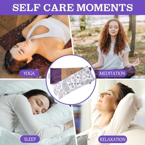 Hihealer Eye Pillow Yoga Meditation Accessories Lavender Aromatherapy Weighted Eye Mask for Sleeping, Yoga, Meditation, Self Care Relaxation for Women Mom Christmas Gifts (Purple*1,White*1)