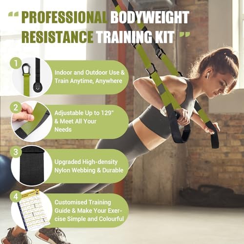 Home Resistance Training Kit, Adjustable Full Body Workout Strap Resistance Trainer with Handles, Door Anchor and Training Poster, Resistance Straps for Indoor, Outdoor and Home Gym Equipment
