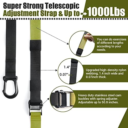 [Durable Workout Straps] The home resistance training straps is designed with extension strap for you to use in more scenarios. And with two industrial strength polyester material of telescopic straps, which can provide up to 118 inches of exercise length. In addition, our door anchor with memory foam can be combined with the door for full body resistance exercise indoors, which can provide up to 95 inches of exercise length.