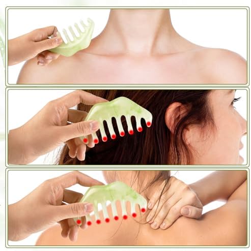 [Multipurpose Massage Therapy] Our jade gua sha comb can be used for massage in different parts, in addition to being used as a scalp comb, it can also be used to help release muscle tension, suitable for face, head, neck, back, Hand and foot massage. It can be used to relieve periarthritis, migraine or spinal pain, etc. This massage comb can reduce your stress and relax your body.