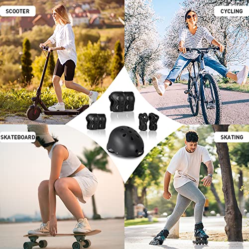 JBM Youth & Adult Full Protective Gear Set, Multi-Sport Helmet, Knee Pads and Elbow Pads with Wrist Guards, Full Protection (7-Pieces Protective Gear Set((Black – Large, 14 Years – Adult)