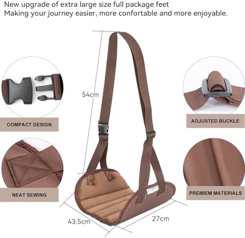Jetmack Upgraded Airplane Foot Rest | Airplane Travel Accessories | Foot Rest for Air Travel | Foot Hammock for Plane Travel | Under Desk Footrest | Best for Relaxation on Long Flights (Brown)
