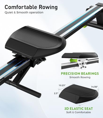 【Quiet&Smooth】The magnetic rowing machine uses advanced magnetic resistance system.Plus,after July 2023,we ultize premium stainless steel rail,ensuring a smoother and quieter rowing motion.With noise levels below 25db,you can enjoy rowing quietly with every pull.No worry to disturb your family or neighbours.