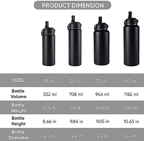 Kerilyn Stainless Steel Water bottle with Straw & Wide Mouth Lid, Wide Rotating Handle, 24oz Double Wall Vacuum Insulated Water Bottle Leak Proof, BPA Free, Keep Cold and Hot, Black 24oz