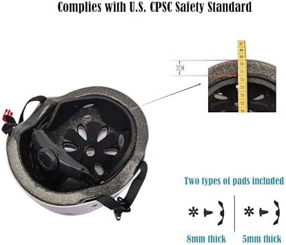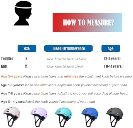 【High-quality Materials】: Kids bicycle helmet is made of strong ABS shell and shock-absorbing EPS foam, which can provide comprehensive protection and ensure children are protected from injury in the event of a collision. The adjustable kid helmet comes with two sets of liners: 5mm and 8mm, which are removable and washable to provide a better fit for children.