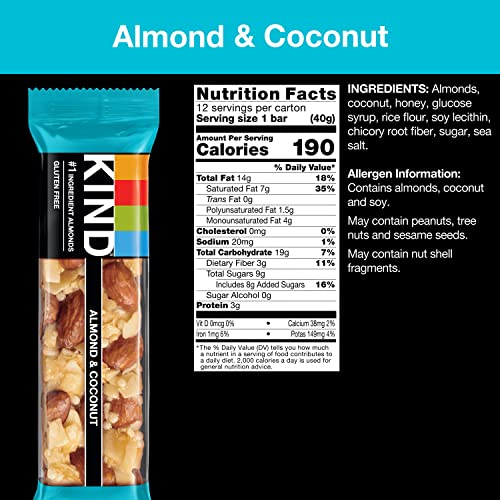 KIND Bars, Almond & Coconut, Healthy Snacks, Gluten Free, 12 Count