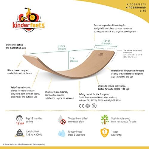 INTENTIONALLY-DESIGNED: Crafted to ensure long-lasting use and durability, each board is manufactured to support active and imaginative free-play for tiny tots up to 300 lbs (136 kg). Dimensions include 27.5” L x 4” W x 3” H (70 x 10 x 7 cm). Suitable for children ages 12 months and up, the Kinderboard LITE is designed for small children to easily maneuver and handle. This durable Montessori furniture is a solid heirloom item can be used for many years of adventure.