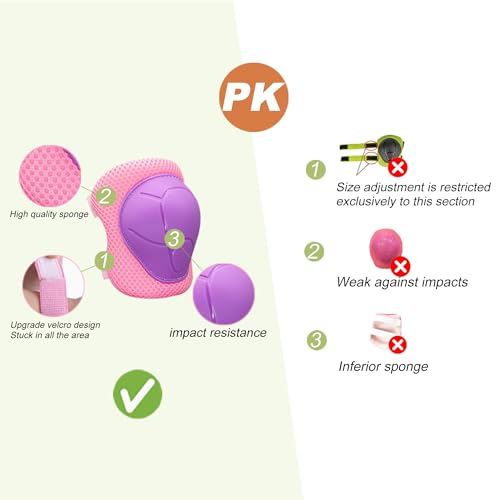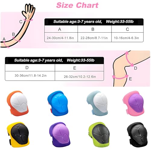 【Adjustable Size】: Consisting of 2 kids knee pads, 2 kids elbow pads, and 2 kids wrist guards, the size is suitable for ages 3-7 years old. The magic stick allows for easy size adjustment (refer to our size chart in the detailed picture)