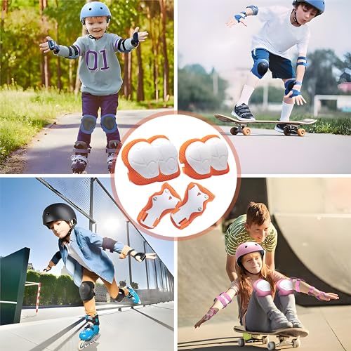 Knee Pads for Kids Unicorn Protective Gear Set Knee Pads and Elbow Pads Set with Wrist Guard for Girls Boys Roller Skates Inline Skatings Scooter Cycling Bike Skateboard (Small, Orange)