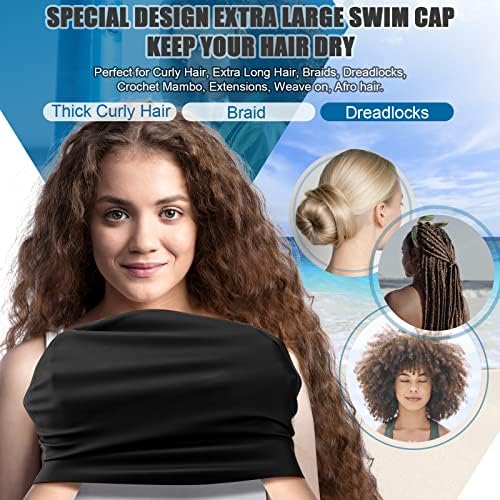 Kwanan Extra Large Swimming Cap for Long Hair, Braids and Dreadlocks, High Elasticity Thick Swim Hats, Waterproof Silicone Swim Cap for Women&Men, Keep Your Hair Dry