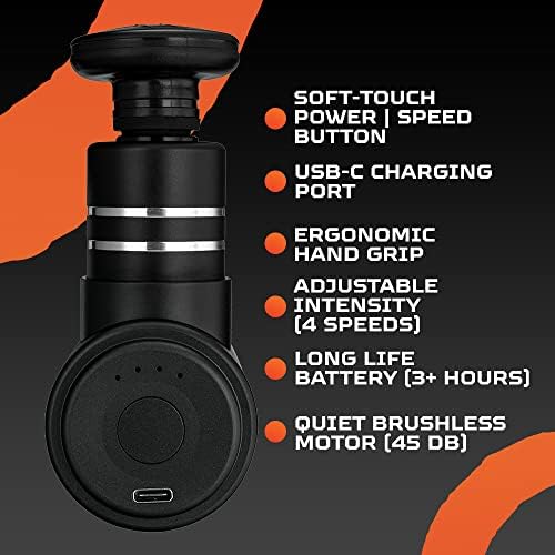 TINY ENOUGH TO TRAVEL ANYWHERE – The muscle gun is the perfect massage gun for athletes its the size of a smartphone (5.6”H x 3.5”L x 1.7”W) and weighing in at approx 1lb, tuck this tiny, tote-able workout partner into your carry-on, workbag, purse, or yes (cargo) pockets…then hit the road. Bonus? This deep tissue percussion muscle massager charges with an ordinary USB-C charger, so that’s one less thing to pack.