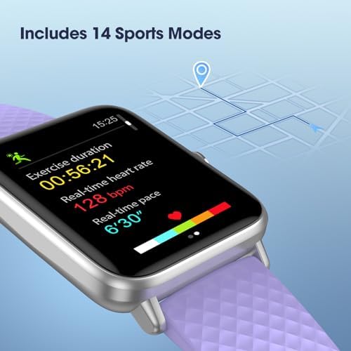 To report an issue with this product,click here. 14 Sports Modes and Accurate Health Tracker: Our Fitness Watch supports 14 sports modes, like walking, running, cycling and so on. You can keep track of your workout throughout the day, including your steps, distance, calories burned, and mileage. You can connect your smartphone GPS to your smart watch to track all your routes and distances during your workout. 5ATM Waterproof and 7 Days Battery Life: Our fitness smartwatch is designed with 5ATM water resistance rating, which can resist any sweat and rain of your daily activities, and can even be worn while swimming. After fully charged, you can enjoy up to 7 days use time, or up to 30 days standby time. Call and Message Notification: Incoming call and SMS reminders ensure that you will not miss any important things. You can customize message notifications for certain specific applications like Facebook, Twitter, Instagram, Email, Text Messages etc, to avoid excessive message interruption. Customize Your Watch Style and Wide Compatibility: The 41mm (1.3″ ) screen smartwatch provides various dials to choose from, or you can customize the watch face with your own photos. It also features with many practical tools like pedometer, breath training, music control, alarm clock, stopwatch, adjustable brightness, calendar, time display etc. Compatible with Android OS 5.0 & iOS 10.0 & Bluetooth 4.0 or above. Gentle reminders: Please do not wear the smart watch too tightly to prevent excessive friction that may cause skin abrasion. Give your watch a break after prolonged use.