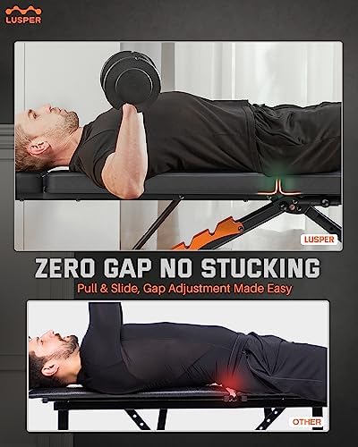 Lusper Zero-Gap Adjustable Weight Bench – 880 LB Foldable Workout Bench, Extended Head and Neck Protection Design, 5-Sec Fast Folding Multi-Purpose for Flat/Incline/Decline