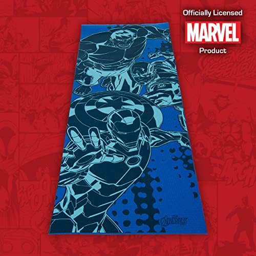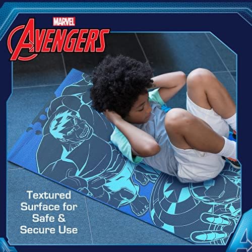 Marvel Avengers Kids Yoga Mat Non Slip, All Purpose PVC Fitness and Workout Mat for Boys and Girls, Features Iron Man, Hulk and Captain America, Navy, 3 mm