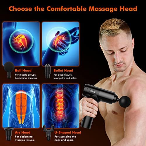 10 Adjustable Percussing Intensity Levels & 4 Heads: Match right head with right intensity level for right massage area to work on deep muscle tissue, to relieve your soreness, to remove muscle stiffness and to promote blood circulations. Vibrating Frequency from 30-50HZ.