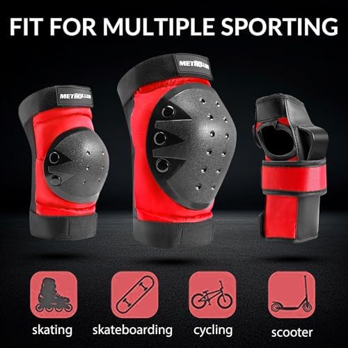 METROLLER Adult & Kids Protective Gear Set for Men, Women Youth Knee Pads, Elbow Pads & Wrist Guards 3 in 1 for Skateboarding Multi-Sports Protective Gear