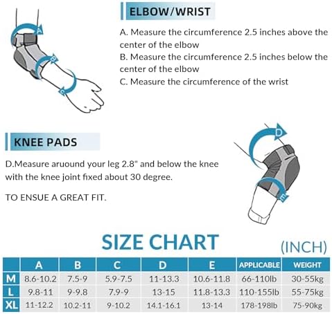 FIT FOR MULTIPLE SPORTING The protective gear set can be used with roller skating, skateboarding, cycling, scooter and various action outdoor sports to provide you with protection. To prevent the protective gear from falling off and shifting during exercise, please make sure that each part is worn correctly.