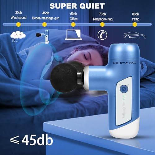 Powerful Deep Tissue Mini Massage Gun – A high-torque brushless motor that ramps up to 3400 RPM helps to rejuvenate sore tissue and aching muscles by sending waves of vibration to your arms, shoulders, back, lower back, neck, calves and more. This percussive massager is a great way to relieve your muscle tension after intense workouts. 6 Adjustable Speeds & 4 Massage Heads – Choose from 6 speeds to adjust massage intensity level to your preference. Get a personalized massage with 4 replaceable massage heads that target different body parts and muscle groups. Rechargeable Massage Gun – Enjoy a comfortable massage with noise levels lower than 42 db even at the highest speed levels. Long-life battery allows the handheld massage gun to be power a weeks’ worth of workouts after fully charging (Tip: Use time may differ depending on the speed selected) Easy to Carry – It comes with a sleek carry case for all attachments. Ideal for athletes or individuals to use at home or to take out on trips for use anywhere and anytime. This is a great gift choice for your family and friends Excellent Customer Service – Equipped with a professional and qualified service team responsive for any issue within 24hours. Please feel free to contact us if you have any questions or concerns Mini Massage Gun is the most flexible massage device, compact but powerful. Ultra-portable design, very convenient for you and your family to use, whether it is travel, cycling, outdoor sports relaxation, it is the best choice. DHcare portable mini massage gun is equipped with 1800mAh lithium battery. Equipped with Type-C charging cable (charging plug not included), it is easy to charge and brings you the ultimate enjoyment.