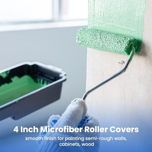 Microfiber paint roller covers: The 4 inch small paint roller covers are easy to clean and reusable, these roller covers can hold ample paint for good coverage and result in a great finish.