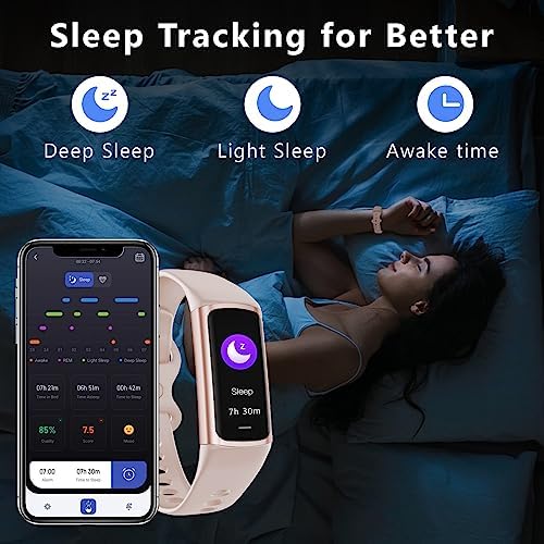 MORELOCO AMOLED Fitness Tracker Watch with Heart Rate Monitor Blood Pressure Blood Oxygen Sleep Monitor Women’s Health Tracking, Music Control, Waterproof Smart Watch. (2-Pink)
