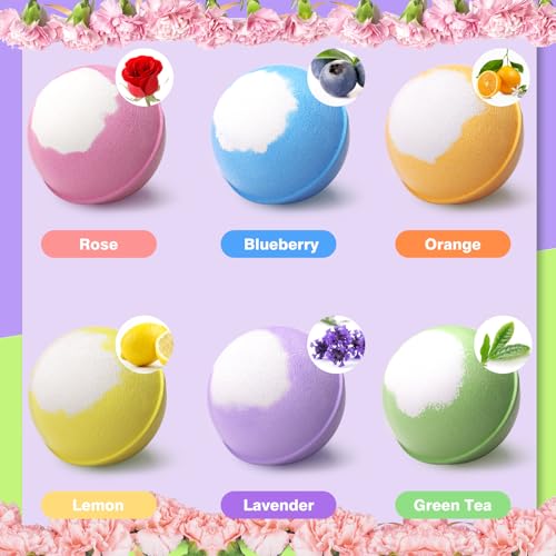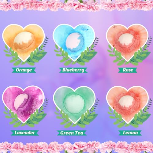 Long-Lasting Aromatic Experience—–The Bath Bombs contains 6 scents: lavender, rose, orange, lemon, blueberry and green tea. Bring you a different and wonderful experience. Made from plant essential oils, sea salt and other natural ingredients, gentle and non-irritating. Suitable for all skin types, no animal testing.