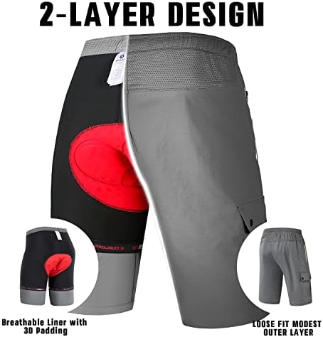 Mountain Bike Shorts for Men with 3D Padded Cycling MTB Shorts, Lightweight Loose Fit Bicycle Underwear Shorts