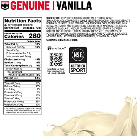 KEY FEATURES – Based on 1 serving, Muscle Milk Genuine Protein Powder contains 32g high-quality protein, 2g sugar, and an excellent source of Calcium and Vitamins A, C & D