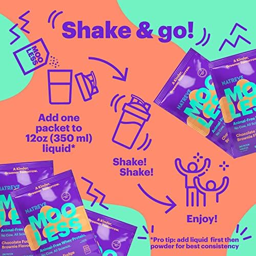 Natreve MOOLESS Animal Free Whey Protein Powder – 20g Lactose Free, Protein Powder with Amino Acids – Fudge Brownie, 10 Servings