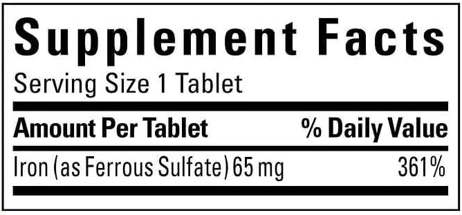 - This bundle include One Nature Made Iron 65 mg (325 mg Ferrous Sulfate) Tablets, 365 Tablets and one Long Glacier Pill oragnizer.