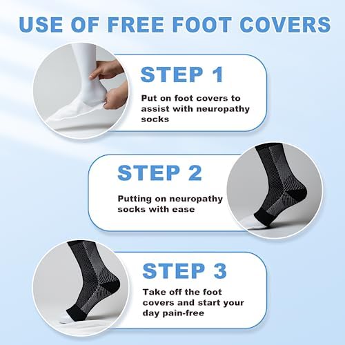 PACKAGE/SIZE Besides 1 pair of socks, 2 free foot coves are included in the package, which will help putting on neuropathy socks with ease without damaging the socks from toenails. size S/M of the neuropathy socks suite for women shoe size 6-9/men shoe size 5-8; and size L/XL suite for women shoe size 9-12 /men shoe size 8-11;