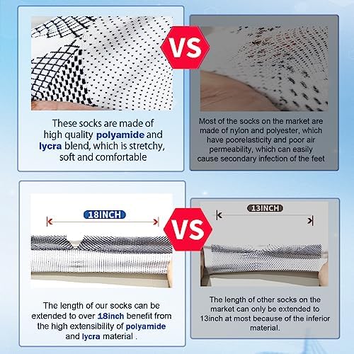 PREMIUM LYCRA FIBER MATERIAL the length of our socks can be extended to over 18inch benefit from the high extensibility of polyamide and lycra material, while other socks on the market can only be extended to 13inch at most. It is more comfortable to wear, has strong extensibility and elasticity, quickly restore to its original shape after it is taken off. Enjoy all day superior comfort and foot stabilization by wearing your socks.