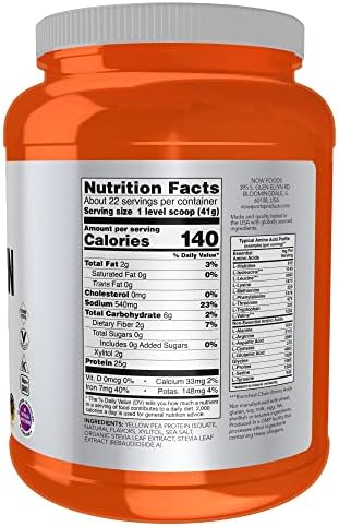 NOW Sports Nutrition, Pea Protein 25 g With BCAAs, Easily Digested, Vanilla Toffee Powder, 2-Pound