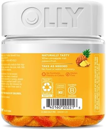 OLLY Pineapple Punch flavor Post-Game Recovery Gummy Rings are a deliciously fruity way to help your body recover after you crush your workout.* The Goods Inside: Vitamin D Supports cellular health and provides antioxidant benefits, Turmeric supports joint health, and our blend of Sodium, Calcium and Phosphate helps replenish your Electrolyte balance.* Kick back & cool off with these post-workout recovery gummies. This nutrient-rich blend supports muscle strength and joint health while our replenishing Electrolytes help your hard-working bod bounce back.* Adults, take one gummy after working out. Chew thoroughly before swallowing. Want to set up your next sesh for success? Try our Pre-Game Energize gummies before your next workout to maximize your exercise.* At OLLY, good health is at the center of everything we do. We make delightful vitamins and supplements with real-deal benefits that help you live Happy Inside Out. *These statements have not been evaluated by the Food and Drug Administration. This product is not intended to diagnose, treat, cure or prevent any disease.