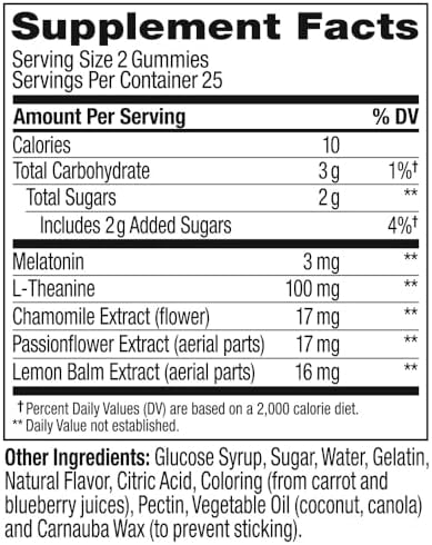 THE GOODS INSIDE: Effective sleep blend features 3mg of Melatonin a naturally occurring hormone that works with your body’s chemistry; L-Theanine supports calmness and Botanicals like Chamomile, Passionflower & Lemon Balm to help soothe and relax