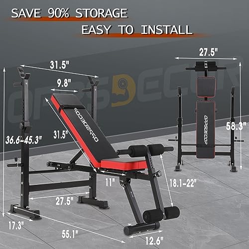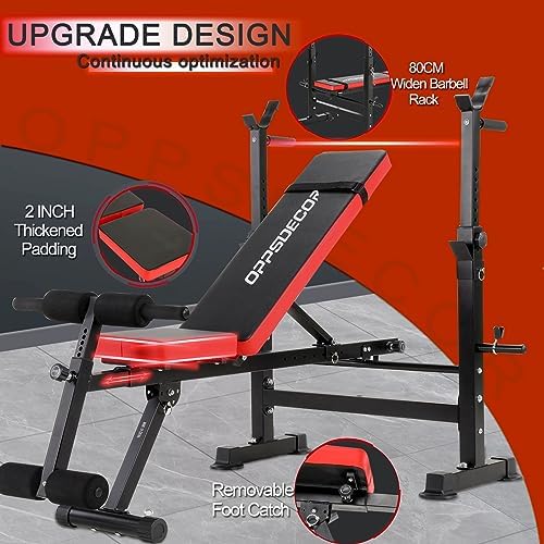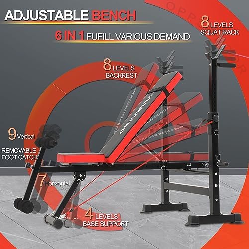 OPPSDECOR 6 in 1 Weight Bench Set with Squat Rack Foldable Adjustable Bench Press Set with Removable Foot Catch Foldable Strength Training for Home Gym WJZB916