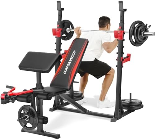 OPPSDECOR 900 LBS Adjustable Weight Bench Set with Squat Rack Preacher Curl Weight Bench with Leg Extension Bench Press Set Sit up Incline Flat Decline Workout Benches for Home Gym Full Body Workout