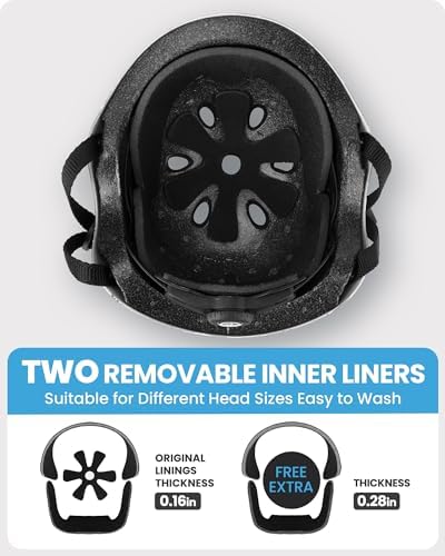 EXTRA REMOVABLE LINING – Skateboard helmet with two removable liner for different head sizes and easy to wash the sweat away.