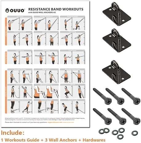 OUUO Wall Mount Workout Anchors for Resistance Bands,Body Weight Straps,Strength Training, Yoga, Home Gym, Physical Therapy Exercise and Closed Loop Bands (Gun-Black)