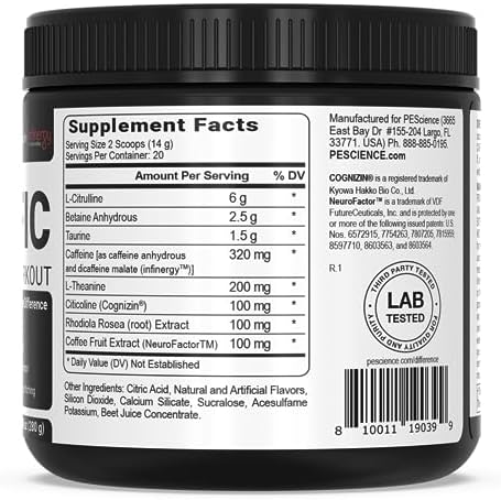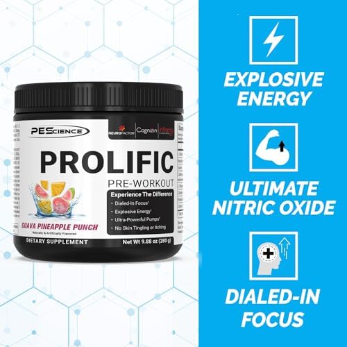 PEScience Prolific Pre Workout Powder, Guava Pineapple Punch, 40 Scoop, Energy Supplement with Nitric Oxide