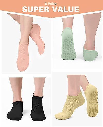 ✅VARIOUS USE OCCASIONS – One Size fits Women’s US shoe size 5.5-9. These grippy socks are perfect for yoga, pilates, bikram, barre, ballet, studio, gym or dance. Also ideal for hospital socks, floor socks, physiotherapy, elderly care, pregnancy and more to prevent falls from stairs, or the floor. The MESH DESIGN of the instep is for breathability.